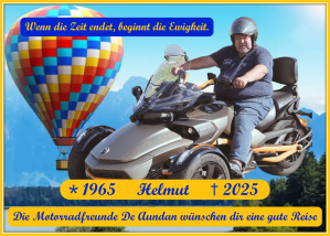 Doch sei DIR gewiss, WIR nehmen DICH bei unseren Ausfahrten in Gedanken mit, denn DU bleibst in unseren Herzen.